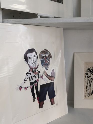 Clare made these just before lockdown on a friend’s kitchen table so still within the domestic environment. The images are sourced from a film poster.