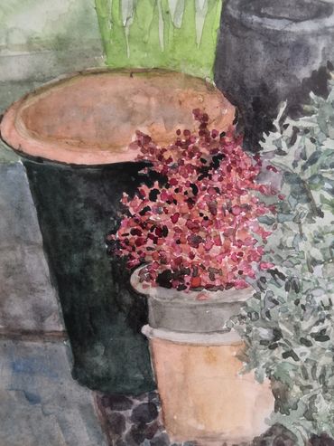 Clare ventured into her garden in the spring to enjoy the warmth of the sun and to make work that was simply about being in a place and what she could see: the garden became a destination while she was not allowed beyond the front gate.
